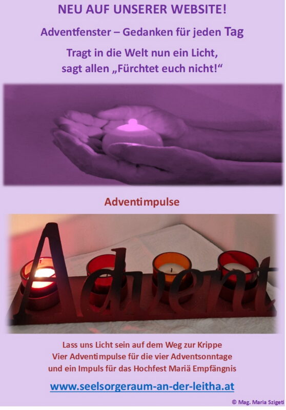 „Tragt in die Welt nun ein Licht“ – dieser digitale Kalender mit meinen Fotos und Impulsen ist eine Einladung zum Nachdenken in der Advent- und Weihnachtszeit. An jedem Tag kann ein „Fenster“ angeklickt werden, das uns immer mehr zeigen will, wie wir Licht in das Dunkel der Welt tragen können.