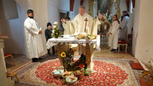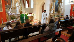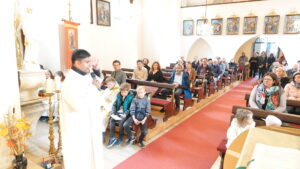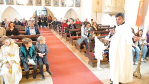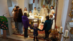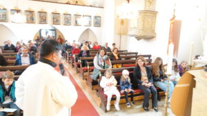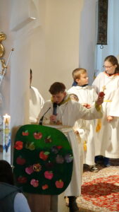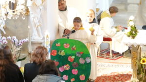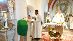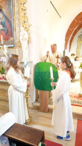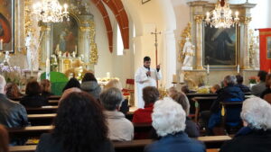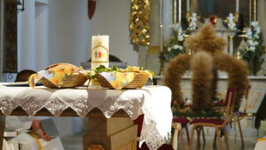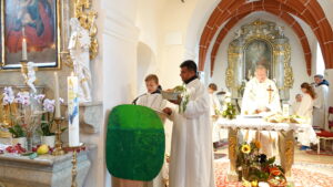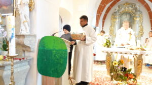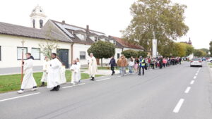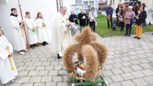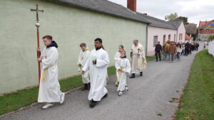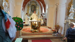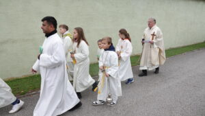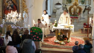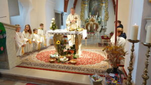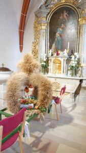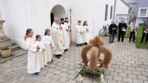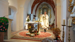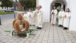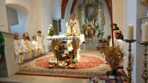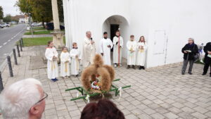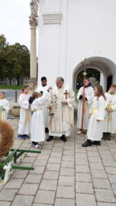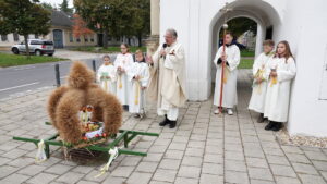 Segnung der Erntedankkrone bei der Michaelskapelle, Prozession zur Pfarrkirche & Hl. Messe