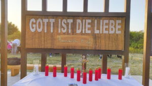 Diese Gedenkstätte erinnert an den unfreiwilligen Arbeitseinsatz junger Menschen für den geplanten Bau des „Südostwalls“ am Dreiländereck vor 80 Jahren. Josef Ratzinger, später Papst Benedikt XVI., war einer dieser jungen Menschen.