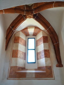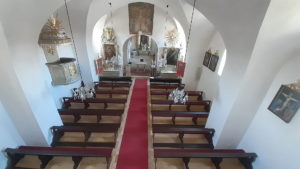 Bei früheren Renovierungsarbeiten wurde ein sehr interessantes Fresko, das die Kreuzigung des Herrn mit Maria und Johannes darstellt, freigelegt. Es könnte, so wird aufgrund des Themas und auch der Darstellung vermutet, aus der Zeit stammen, als die Kirche in evangelischem Besitz war (1610-1673).