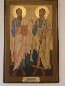 Das wertvolle Hochaltarbild von F.G. Herzsch nach einer Radierung von Maulpertsch, welches 1964 restauriert wurde, zeigt den Abschied der Apostelfürsten Petrus und Paulus vor ihrer Hinrichtung.